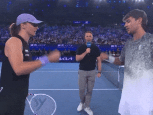 赛前猜拳定发球权的环节更是欢乐拉满,选手们一本正经比划剪刀石头布的样子,非常具有反差萌。要是明年澳网还保留这个环节,强烈建议安排个 “分歧终端机”,这话我先替伊加选手说啦!